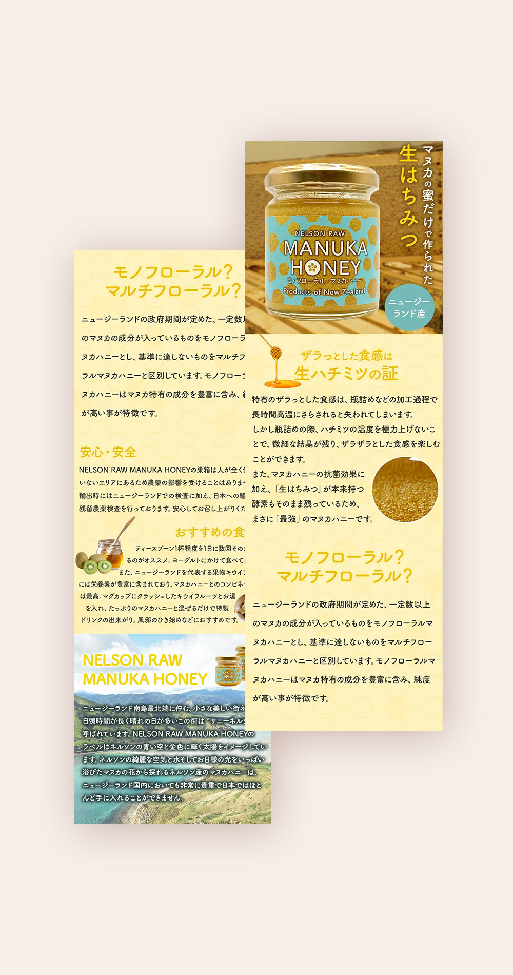 はちみつの商品ページであることが直感的に伝わるよう、メインカラーに黄色を使用。