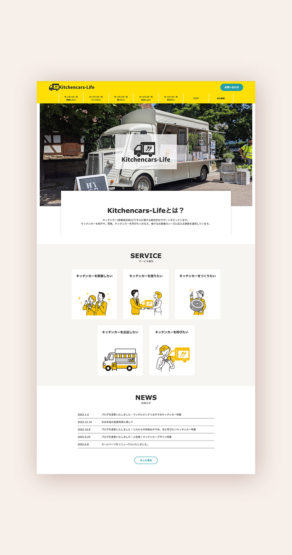 キッチンカーについての知識が少ない方でも理解しやすいよう、イラストを多く使用し、視覚的に分かりやすいデザインにしました。