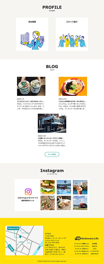 また、キッチンカービジネスに前向きな印象を持ってもらえるよう、明るさ・活発さ・希望をイメージさせる黄色をメインカラーとして使用しています。